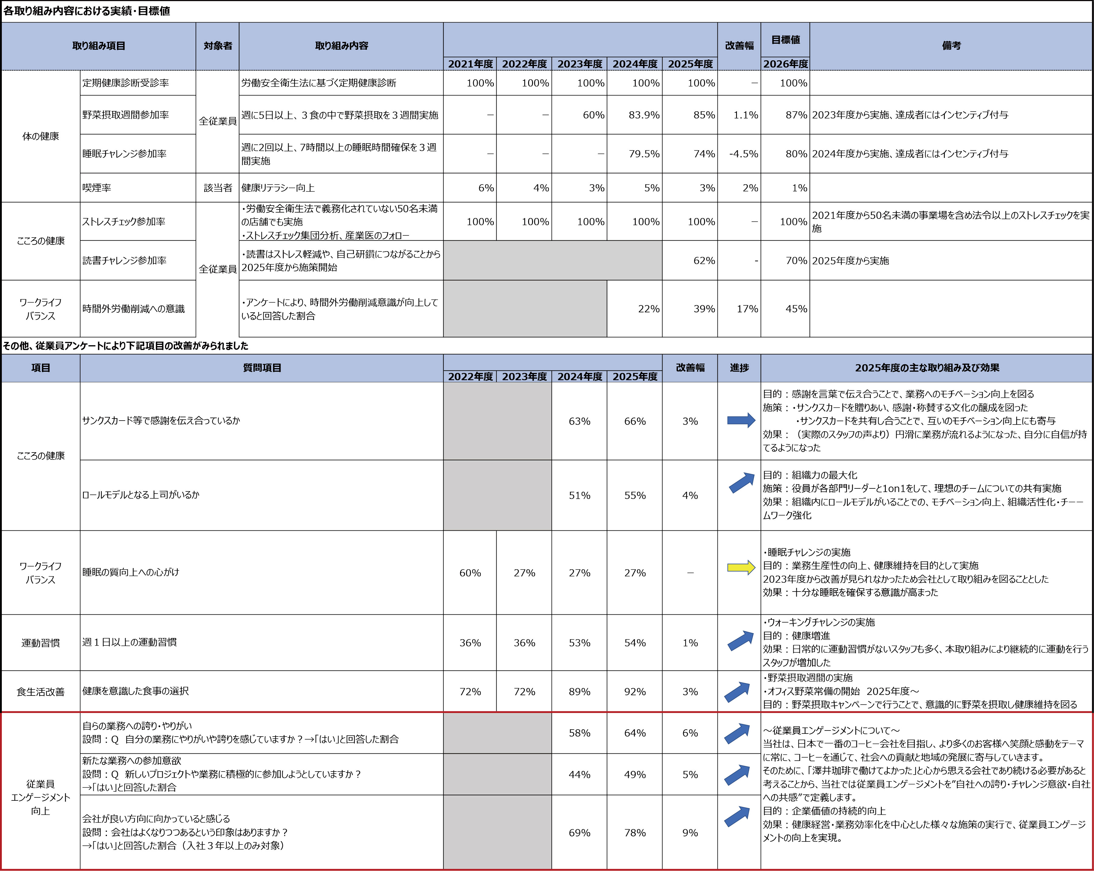 当社は、健康経営の取り組みにおいて、毎年スタッフへアンケートをとり、
