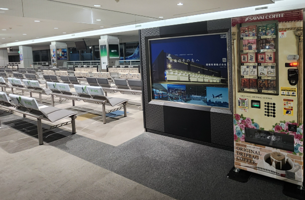 この度、広島国際空港の出発ロビーにドリップバッグコーヒーの自動販売機を2台設置しました。