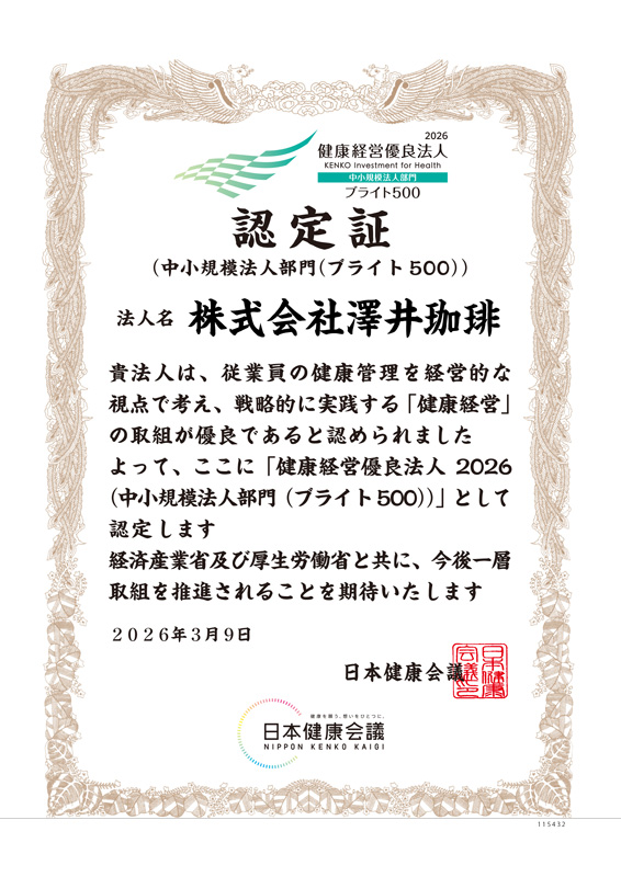 「健康経営優良法人2026 中小規模法人部門 ブライト500(認定法人のうち上位500法人に該当)」に認定されました。